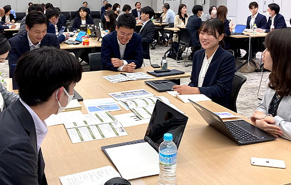 オフィス事業を取り巻く環境は年々変化しており、当社も事業規模や領域の拡大など、変化への対応が求められています。こうした内外の環境の変化に対応するため、JEBLのあるべき姿や成功失敗事例を学ぶ等、会社の将来像について議論する「未来会議」を開催しています。全社員が参加し、一人ひとりが考え、世代を超えた自由な議論はコミュニケーションの活性化にもつながっています。