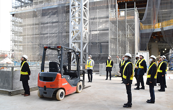 新規開発物件において(主に自社開発物件)、若手社員を対象とした開発勉強会を開催しています。建築工事中の現場に足を運び、構造の特徴や施工の状況を実際に見ることは、座学以上に理解を深めることができます。こうした勉強会だけでなく、毎月の工事進捗を社内掲示板で展開し、全社員が竣工までの道のりを見守っています。