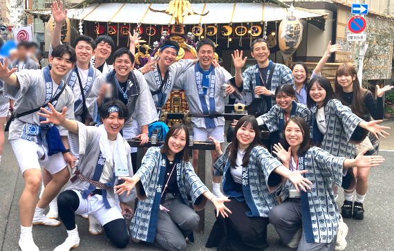 神田祭は、山王祭、深川祭と並んで江戸三大祭の一つとして、京都の祇園祭、大阪の天神祭と共に日本の三大祭りの一つとして毎回盛大に実施されています。各町会ごとに町神輿をもち、各地区を巡行して神田神社に練り込みます。JR神田万世橋ビルが建つ須田町北部町会も祭りへ参加しており、当社もJR東日本グループとして協力しています。こうしたイベントへの参加は、テナントや地域の方と触れ合える大切な機会となっています。